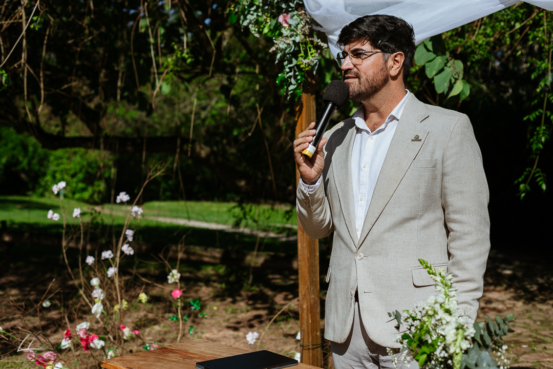 No encantador Jardim dos Plátanos, em Rancho Queimado, Dayana e Leonardo selaram sua união em uma cerimônia ao ar livre, rodeados por uma paisagem deslumbrante. O dia perfeito, com céu claro e clima ameno, parecia ter sido planejado para tornar aquele momento ainda mais especial. Com sorrisos radiantes, o casal trocou votos e se entregou a um amor que parecia transcender o tempo.